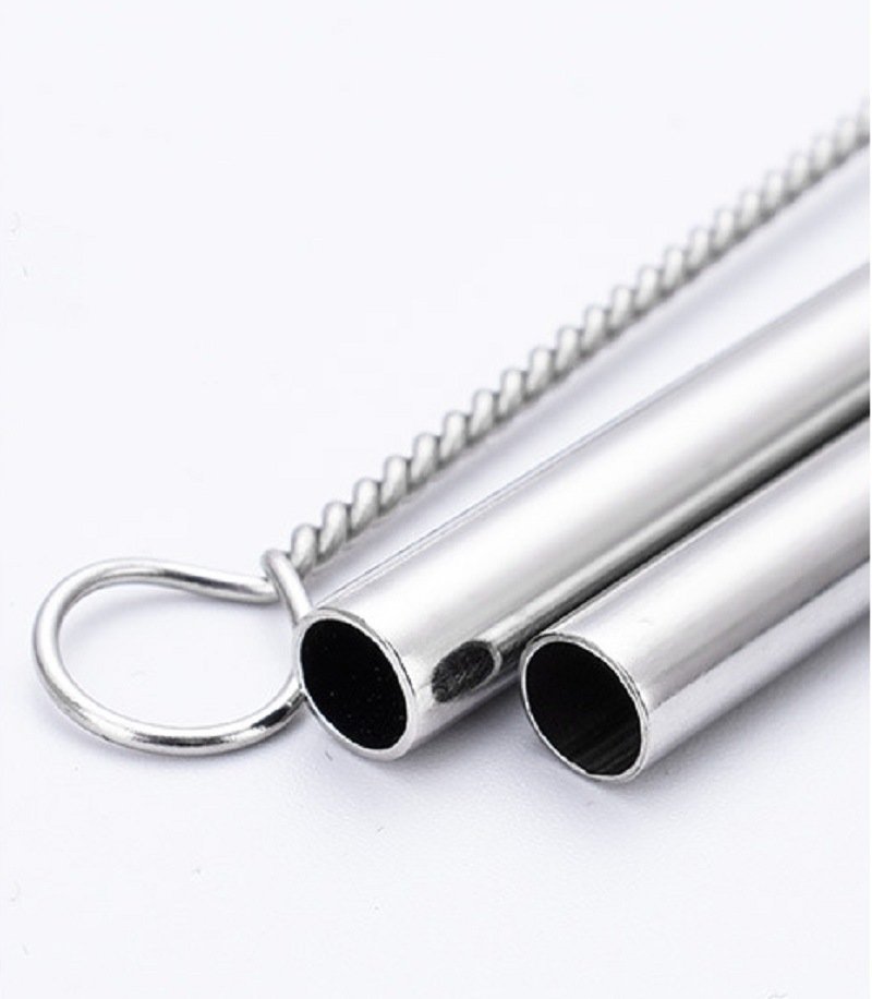 3.Material: 304 ASTM standard food used stainless steel, sizes: chopsticks: 18.6cm/7.3", knife: 18.3cm/7.21", fork: 17.6cm/6.9" spoon: 17.5cm/6.9", thick straw: 21.5cm/8.5'', thin straw: 21.5cm/8.5'', curved straw: 20.8cm/8.2'', clean brush: 20.1cm/7.9''.