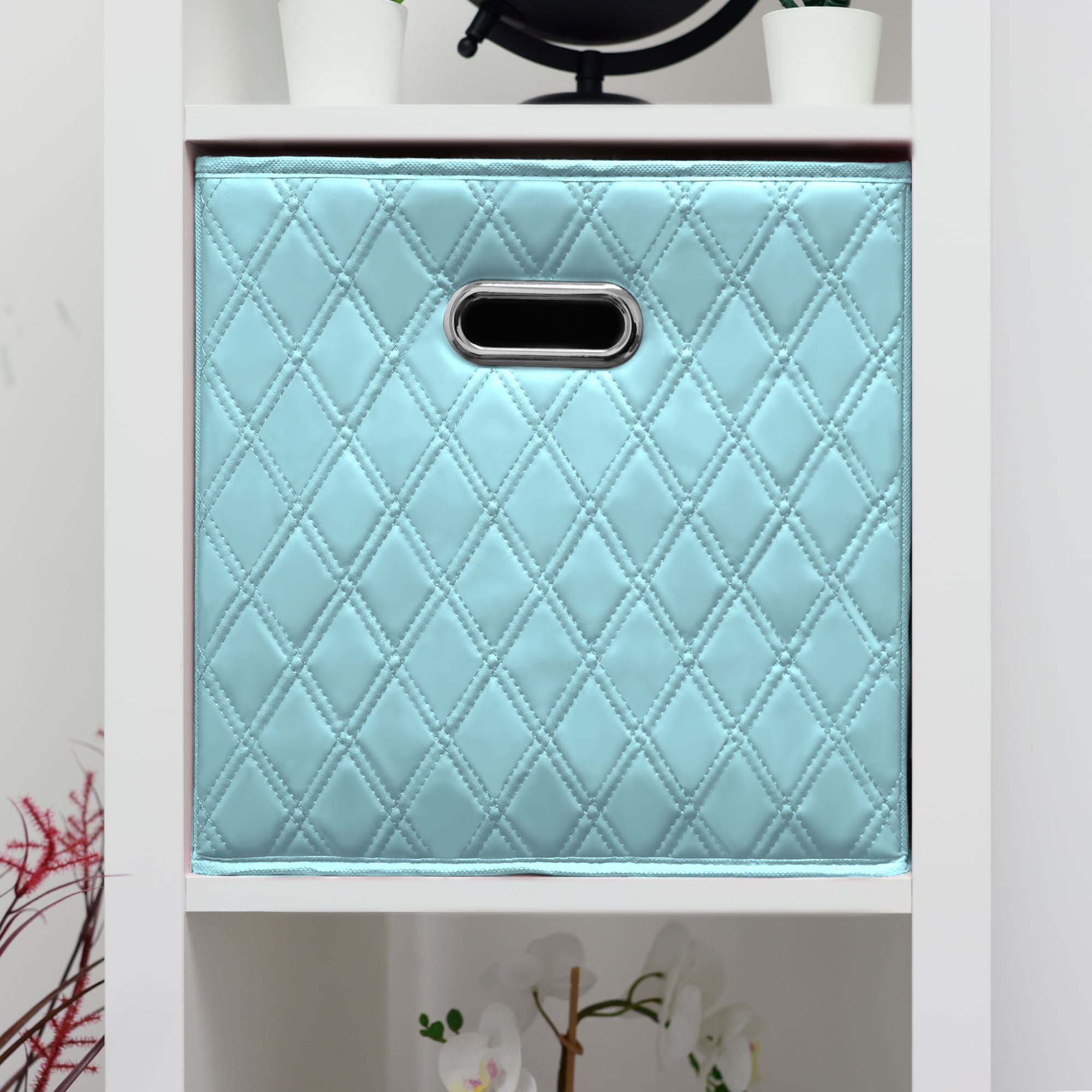 FH Group Storage Cube bins are the ultimate effortless and stylish organization option for every room in your home. Offered in three sizes and including dual handles for easy mobility, the lightweight cube storage bins can be added to shelving, closets and more for optimal storage. Its collapsible design offers easy store away when not in use. The faux leather fabric is featured on either side of the dual handles, bringing luxury to any room. Includes Bonus Air freshener. Manufacturer Part Number: AFJE1001BLUE-3SZ