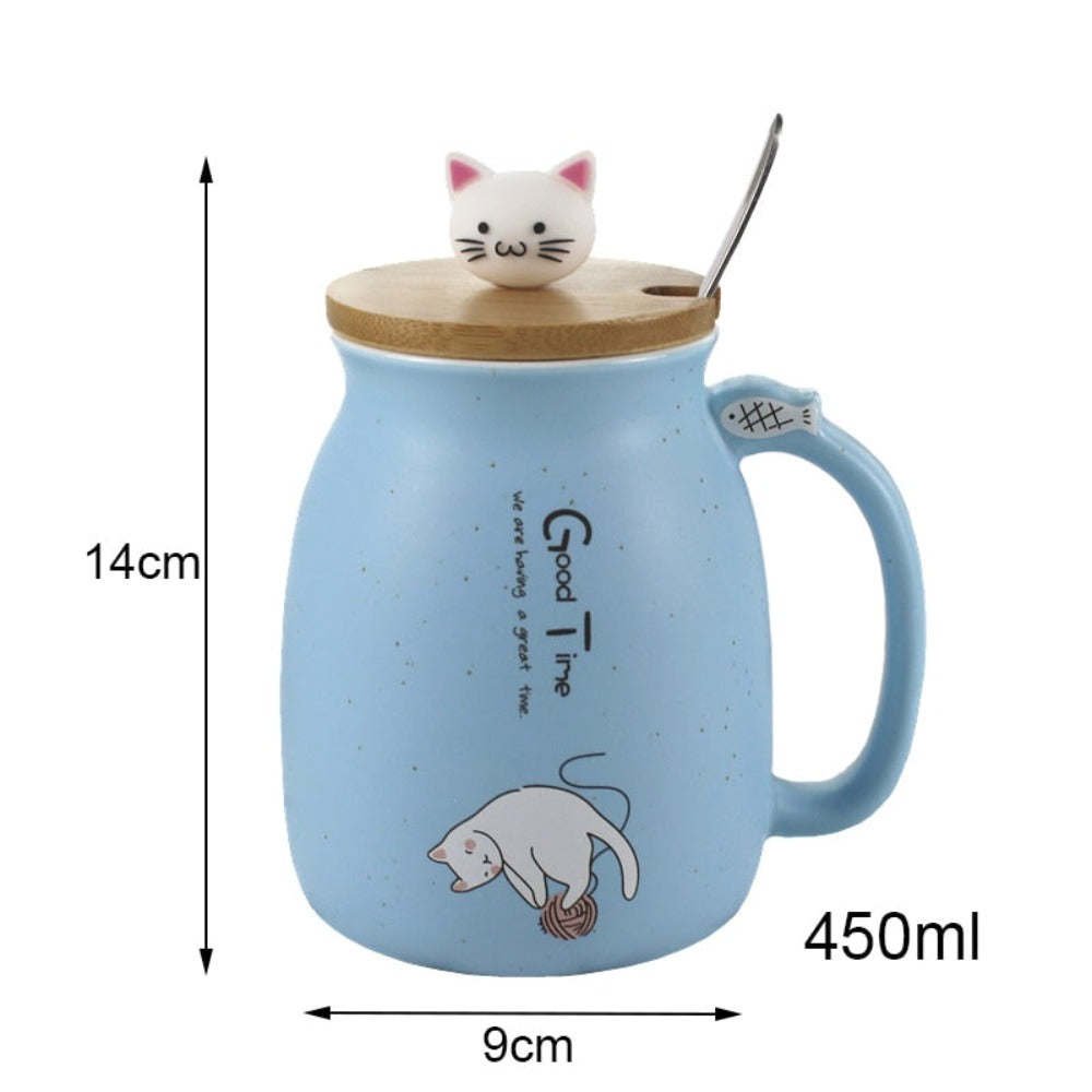 Cartoon Cat Ceramic Coffee Mug - blue