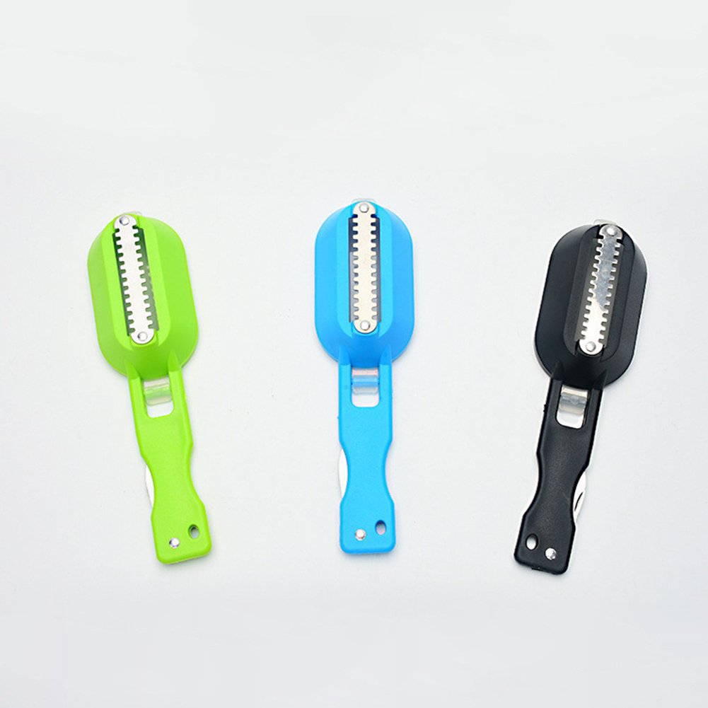Fish Skin Brush Scraping Fishing Scale Brush Graters Fast Remove Fish Knife Cleaning Peeler Scaler Scraper Seafood Tools - Blue
