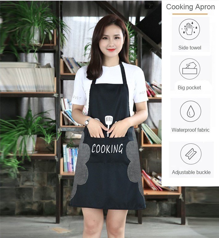Simple, convenient, and stylish, Handz-On Chef Apron is made of waterproof wipe clean polyester, and the soft absorbent built-in terrycloth towels will keep your hands clean to review your favorite recipe, answer an important call, and handle your kitchen appliances without transferring the mess.