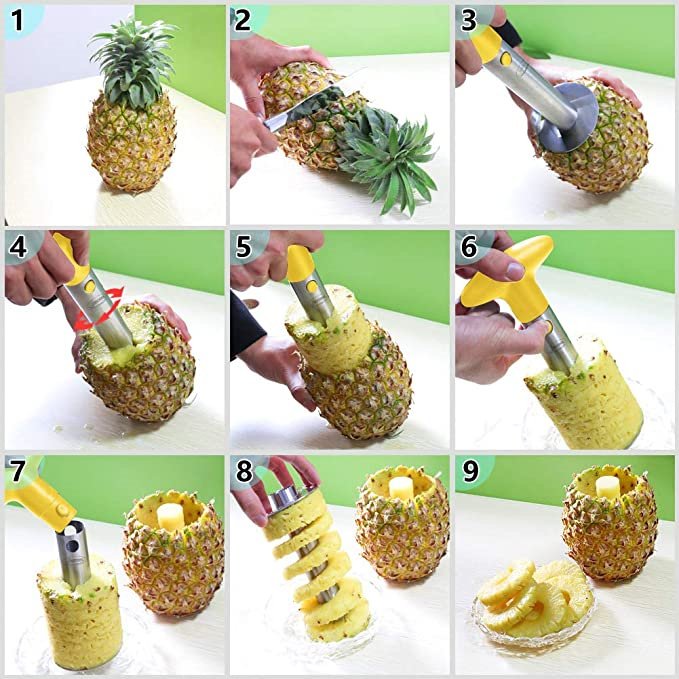 Fast; high efficiency to peel; core and slice fresh pineapple in seconds.