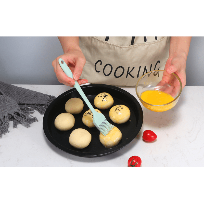 2.VERSATILE AND ESSENTIAL KITCHEN SET - Including: Large Spatula, Small Spatula, Grease Brush, Food Clamp, Whisk. They can meet the basic demand for baking and cooking.